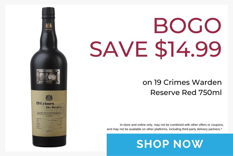 • BOGO Save $14.99 on 19 Crimes Warden Reserve Red 750ml